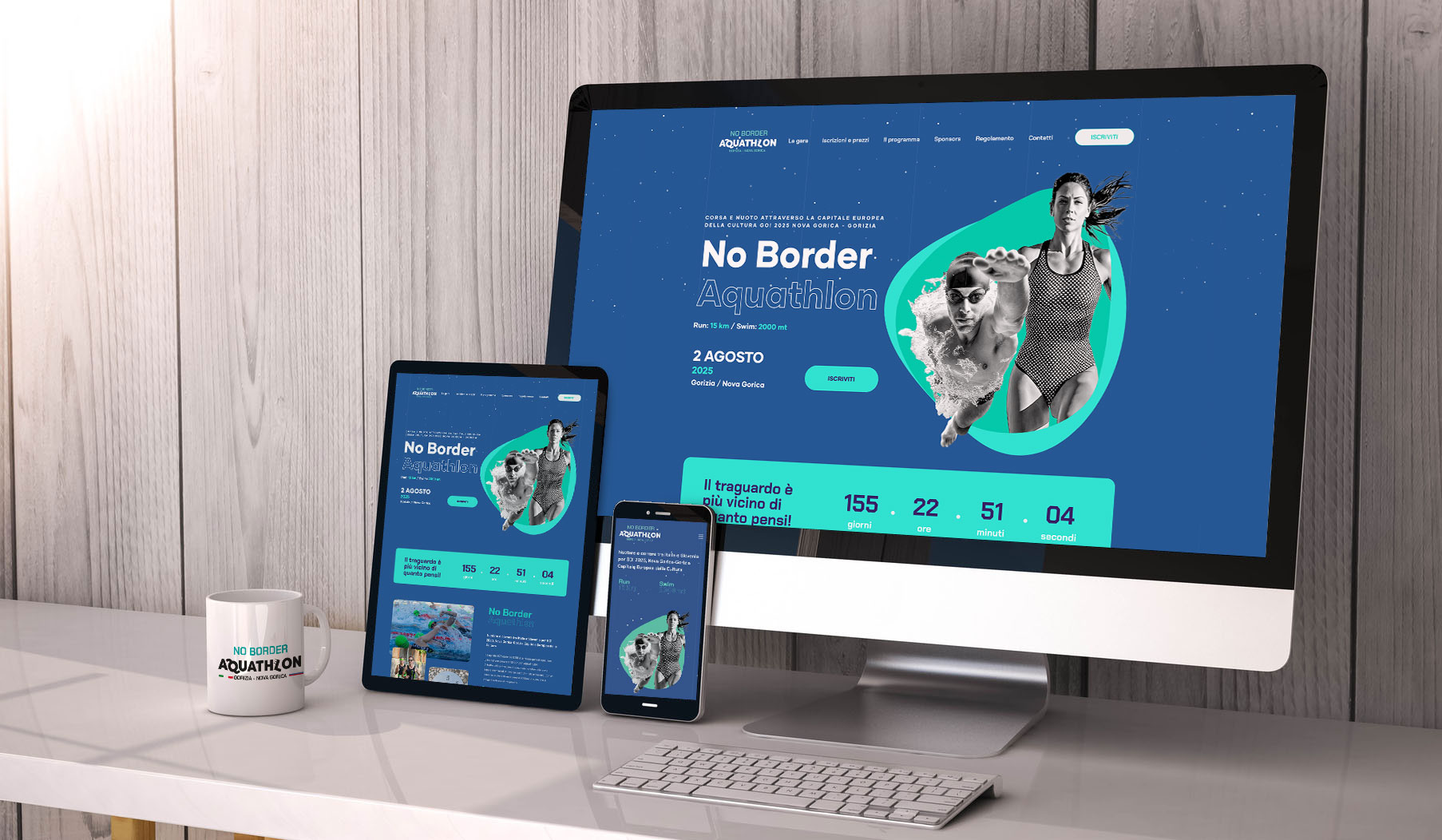 Per accompagnare la nascita del No Border Aquathlon, la prima gara di aquathlon transfrontaliera tra Italia e Slovenia, abbiamo realizzato un progetto di comunicazione integrata che parte da un nuovo logo e si sviluppa in un sito web.